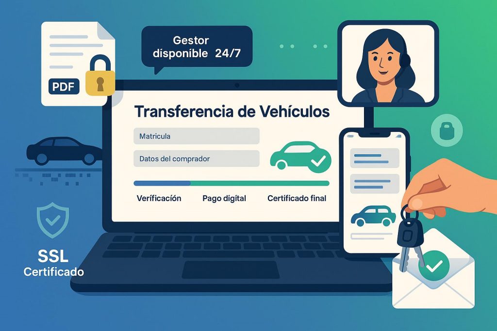 ¿Necesitas hacer una transferencia de vehículo en España y no quieres perder tiempo con papeleos, colas o desplazamientos innecesarios? En nuestra gestoría administrativa online nos encargamos de todo el proceso por ti, de forma rápida, sencilla y completamente digital.